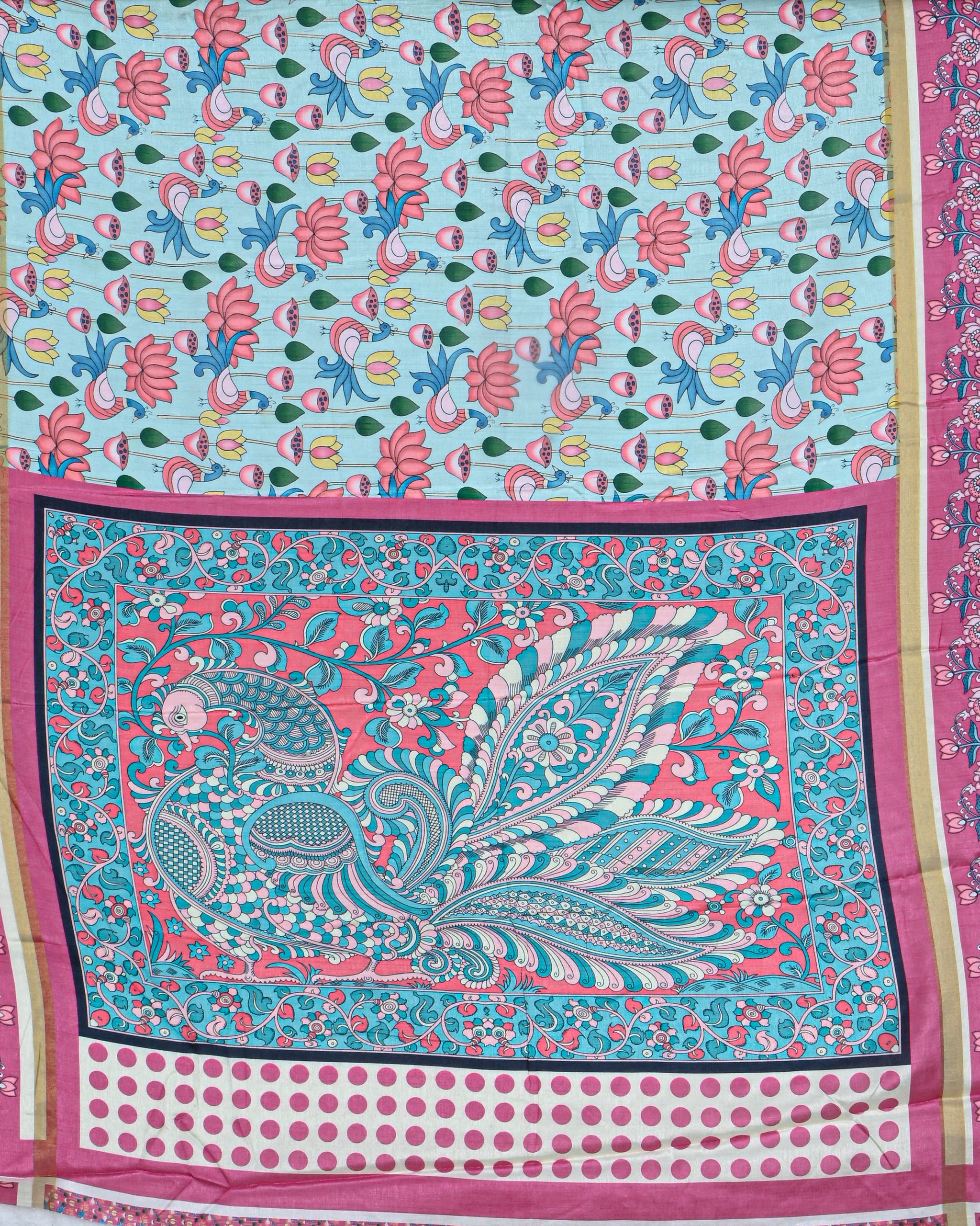 Ferozi color Chanderi Kalamkari Saree