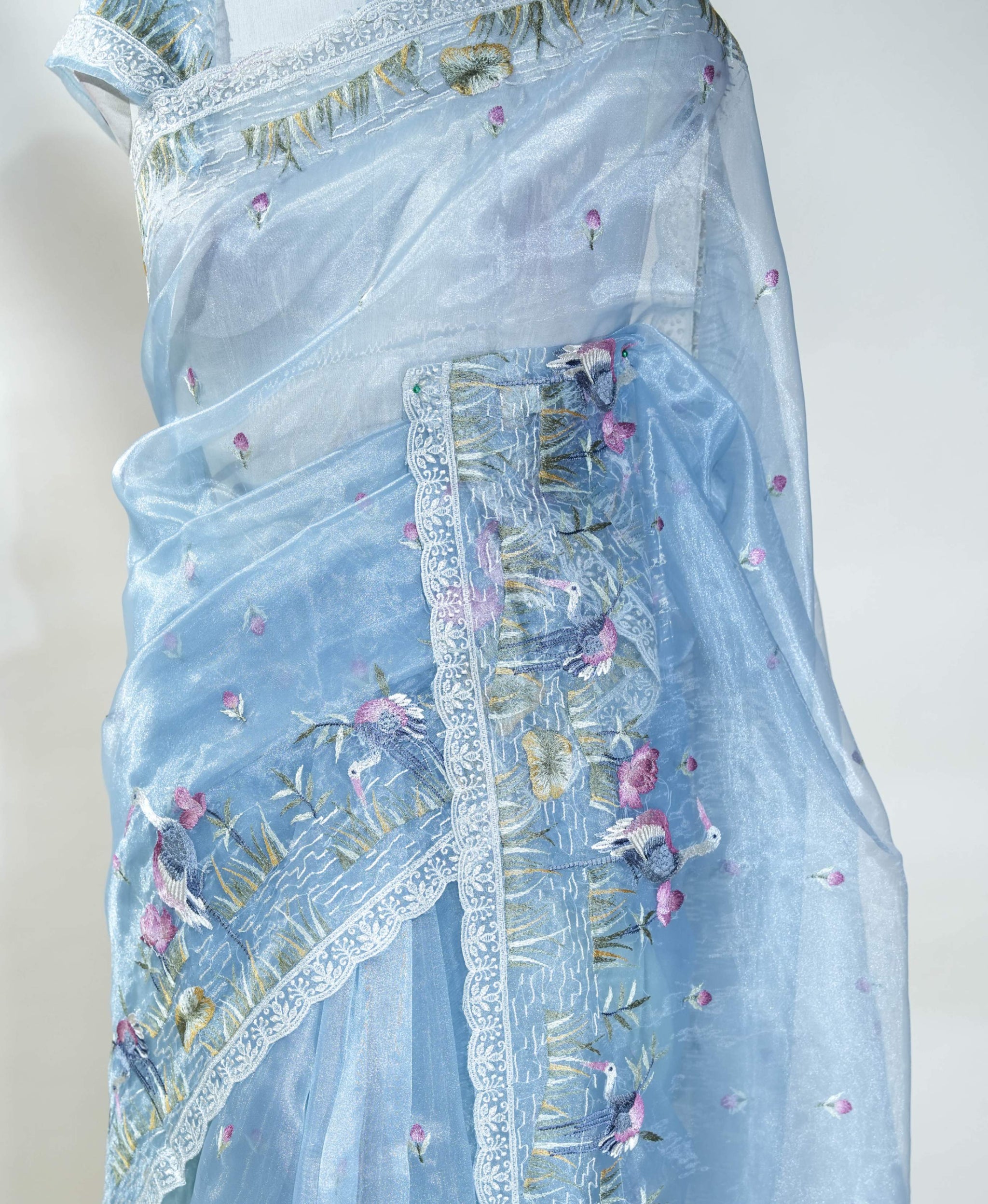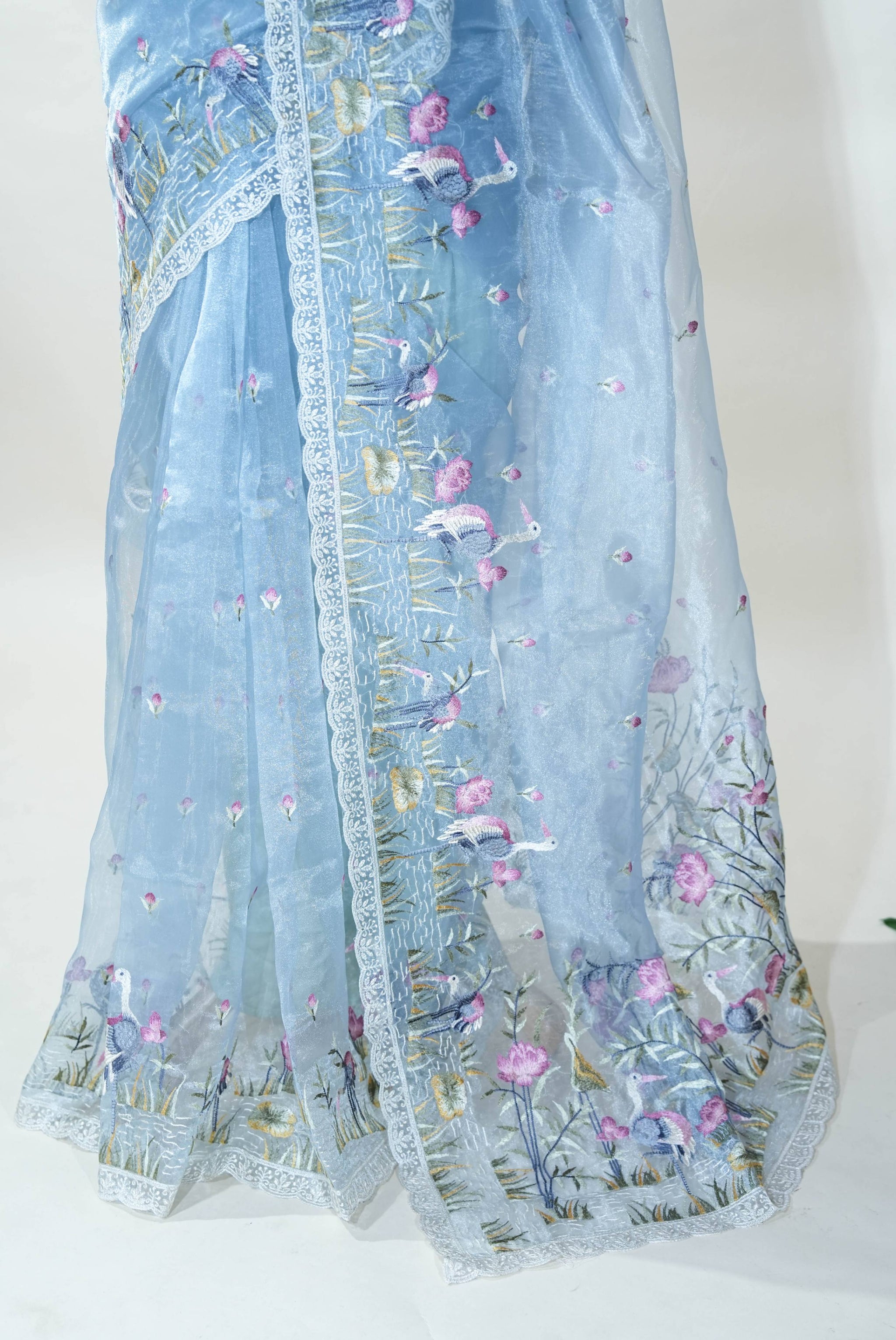 Elevate your traditional wardrobe with the Ferozi Embroidery Organza Saree. Crafted from delicate organza, this saree features intricate embroidery that adds a touch of elegance and sophistication. Its lightweight and translucent fabric ensures comfort and grace, making it perfect for festive occasions and celebrations. Embrace timeless beauty and let this saree enhance your presence with every drape.