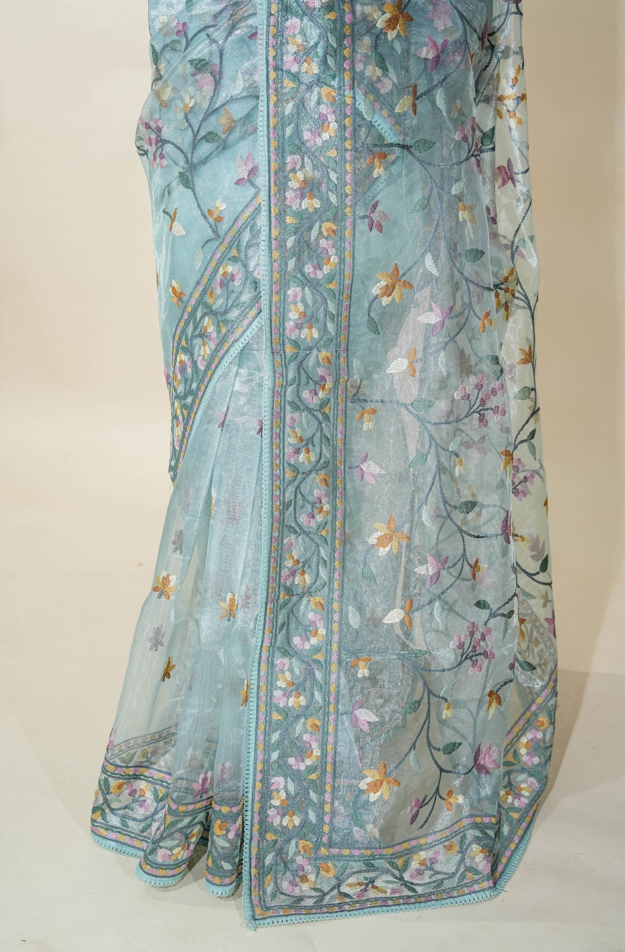 Elevate your elegance with the Ferozi Embroidery Tissue Saree, crafted from delicate tissue fabric that offers a graceful sheen and luxurious feel. Intricate embroidery enhances its vibrant ferozi color, making it perfect for festive occasions and celebrations. This saree drapes beautifully, providing comfort while ensuring you stand out with refined style and timeless charm. A must-have for those who appreciate sophistication woven into every thread.